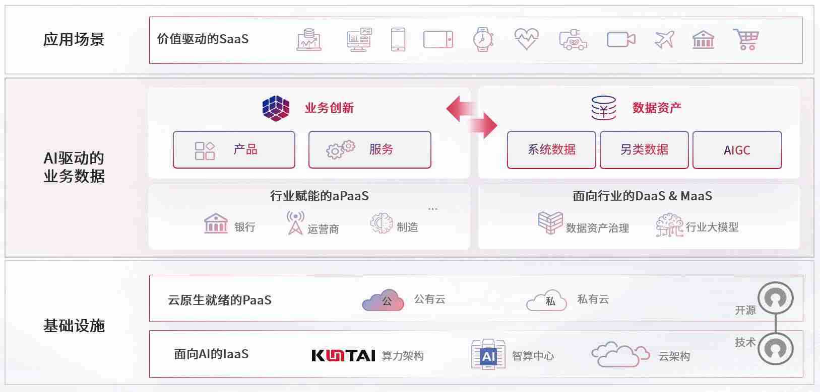 数字时代,,,围绕企业数字化转型的关键要素,,,PA真人游戏数码开创性的提出数云融合战略和技术体系框架,,,,着力在云原生、、数字原生、、AI原生和信创产业上架构产品和服务能力,,为处在不同数字化转型阶段的快消零售、、汽车、、、金融、、医疗、、、政企、、、、教育、、运营商等行业客户提供泛在的敏捷IT能力和融合的数据驱动能力,,构建跨界融合创新的数字业务场景和新业务模式,,助力企业级客户建立面向未来的核心能力和竞争优势,,全面推动社会的数字化、、、智能化转型升级。。。。